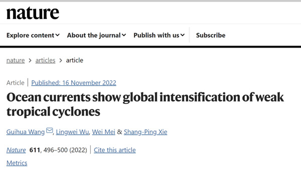 | Nature发文!复旦大学大气与海洋科学系/大气科学研究院王桂华课题组发现近30年全球弱台风显著增强 |