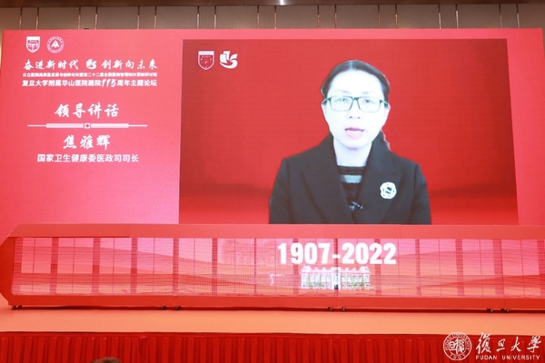 焦扬代表学校向附属华山医院建院115周年表示祝贺。她表示,经过115载接续奋斗,华山医院正迎来成熟发展的黄金时期,推动高质量发展是新发展阶段的崭新命题和不二选择。希望华山医院坚决扛起公立医院“国家队”和“排头兵”的使命责任,更加坚定地把发展着力点放在提升质量和效率上,以内涵发展、技术发展、能力水平发展、服务质量发展全面推进医院高质量发展,不断提高发展的“含科量”“含金量”“含新量”。一要坚持党建引领,为高质量发展提供坚强政治保证。坚持党委领导下的院长负责制,不断健全中国特色现代医院管理制度。二要坚持人民至上,以高质量医疗服务增进人民健康福祉。发挥华山医院学科整体优势和专科特色,努力在防治重大疾病、解决重大健康问题上取得新突破,持续提升医疗质量和服务水平。三要坚持医教协同,强化高质量发展的战略支撑。聚焦“双一流”建设目标任务,培养汇聚更多医德高尚、医术精湛的高素质医学人才,推动产出更多重大原创性医学科技创新成果。焦扬表示,建设世界一流大学,离不开一流医学学科和一流附属医院。学校将一如既往全力支持医院发展,希望华山医院在新时代新征程上守正创新、团结奋斗,在建设健康中国、健康上海的宏伟实践中书写新的辉煌篇章。