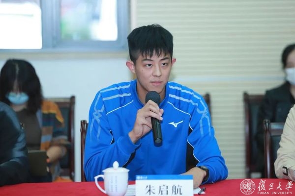 武术队队员、信息科学与工程学院直博生李王臻从5岁开始练武术,2018年曾获得首届世界大学生武术锦标赛男子长拳项目冠军。他感谢学校为学生运动员搭建可以发光发热的舞台,希望用优异的运动成绩来回馈复旦。