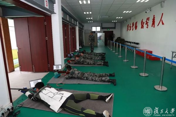 武装部一楼,传来阵阵射击声。焦扬一行来到武装部射击队训练场地,看望慰问正在训练的学生。站在世界冠军风采展示墙面前,焦扬认真听取武装部负责人对复旦射击队队员夺冠、学习生活情况的介绍。