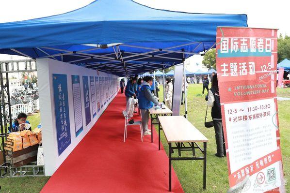 国际志愿者日主题展览活动现场设有青年志愿服务总队、进博会、西部计划项目、二级青志队、十佳风采展示等10个展区。现场,志愿者们也向师生介绍获取志愿服务信息的途径,并帮助志愿者们进行星级志愿者认证。