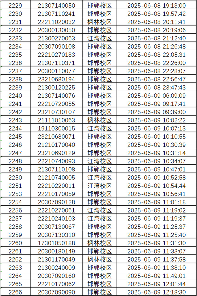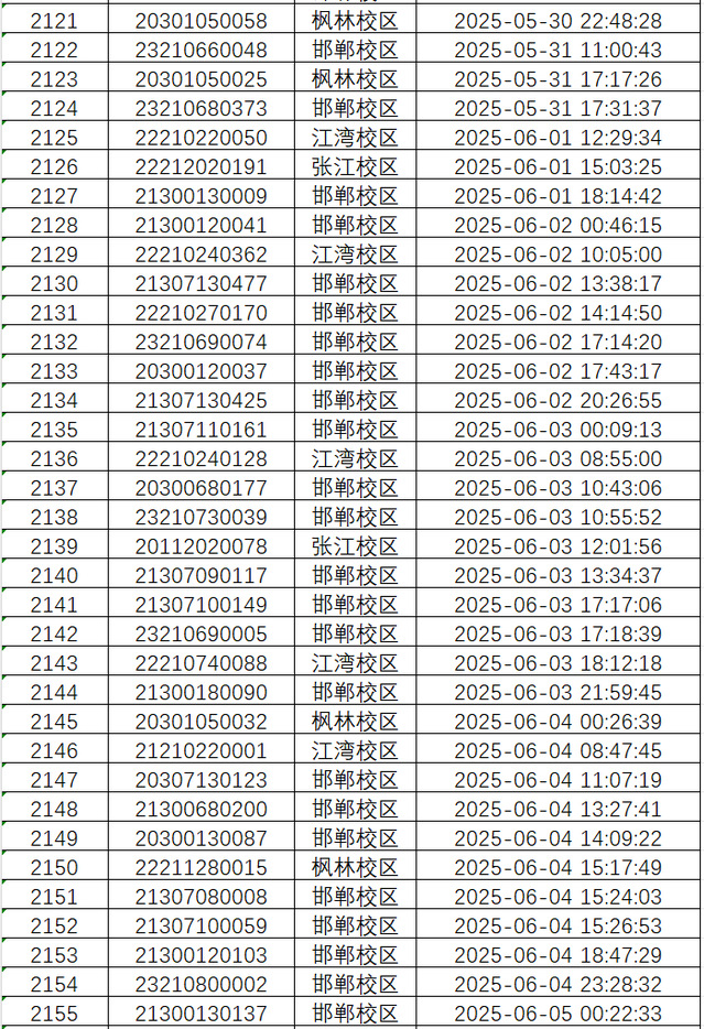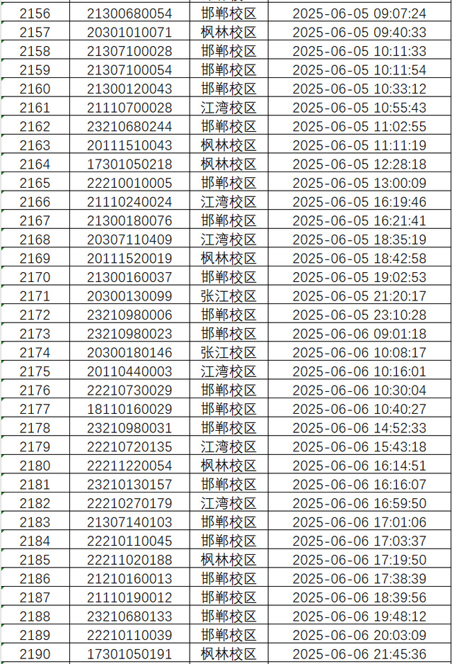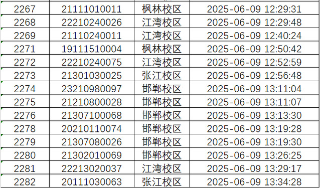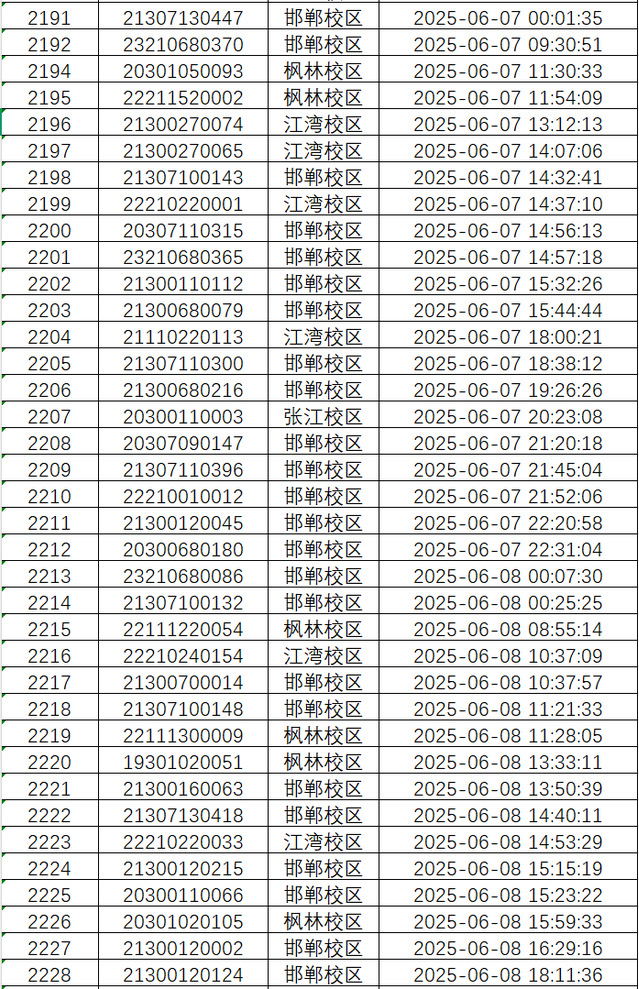 江湾校区:6月13日—6月26日8:00-11:30,13:30—17:00