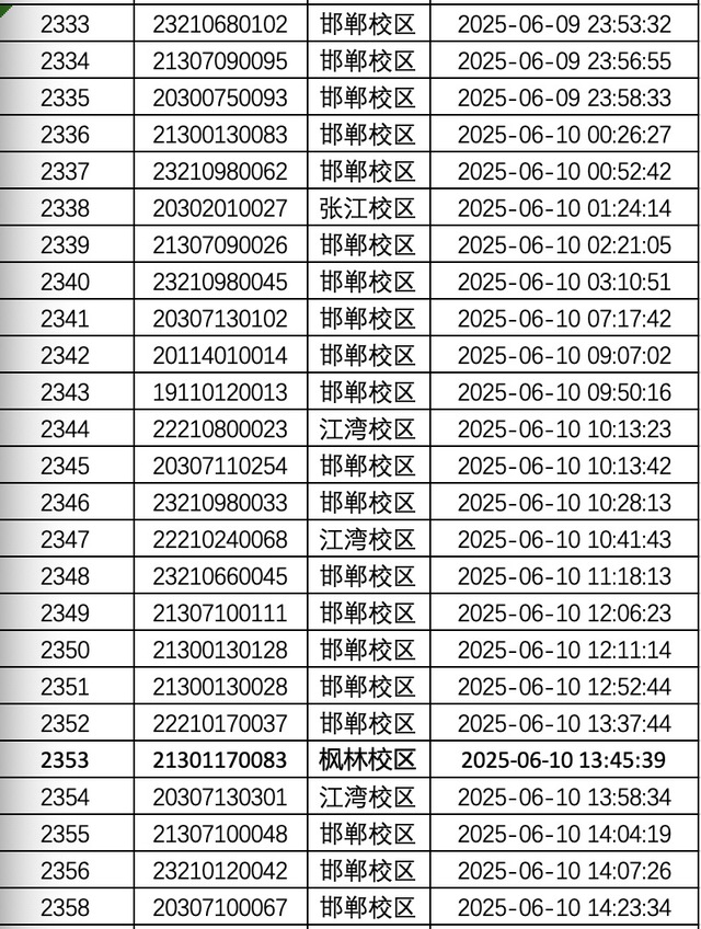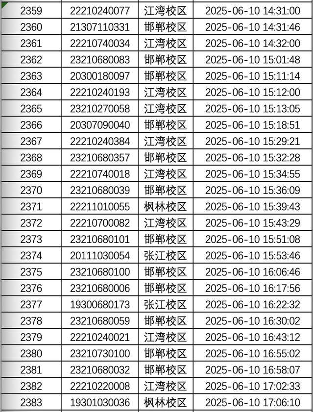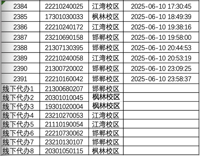 邯郸校区:6月13日—6月26日8:00-17:00