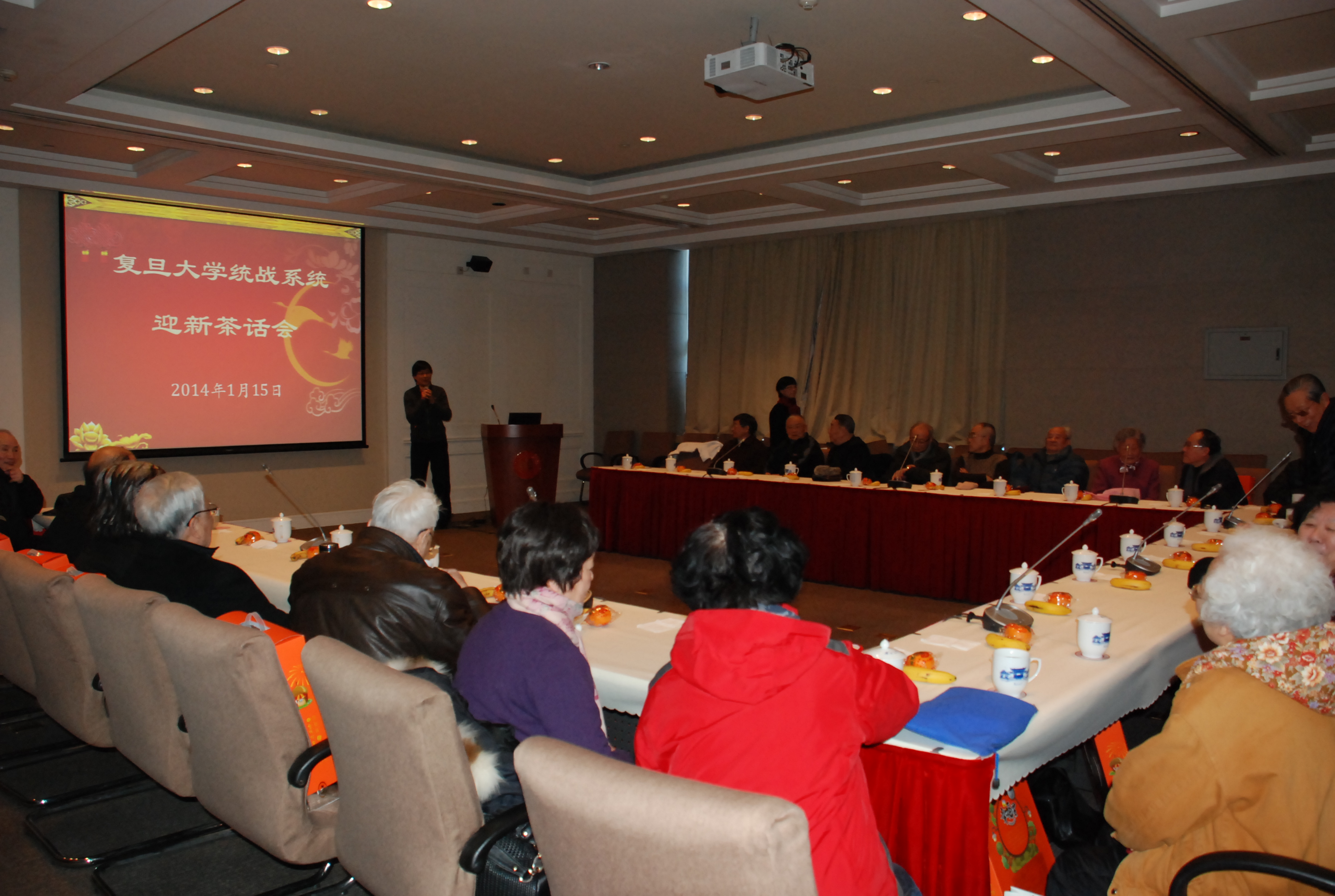 校党委副书记陈立民出席了邯郸校区统战系统老同志迎新茶话会并在会上致辞。 陈立民在致辞中通报了学校2013年的重要工作和学校开展党的群众路线教育实践活动的情况。他指出,2013年校党委完成了一件大事,顺利召开了学校第十四次党代会,成立了新一届党委、纪委班子,党代会报告总结了学校过去7年的工作,凝聚全校智慧提出了初步建成世界一流大学的奋斗目标、工作思路以及实现目标要完成的重点任务。会上,他还通报了学校党的群众路线教育实践活动开展情况,并传达了近期召开的全国统战部长会议精神。他希望统战系统老领导们继续为国家建设和社会改革出力,继续为学校发展和统战工作多提宝贵意见。最后,他代表学校感谢统战老领导们长期以来为学校发展和社会建设所付出的辛勤劳动,并向他们致以新年祝福!!