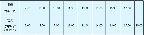 7月13日—9月4日,江湾校区上下车地点统一为宣传栏一处,发出时间为宣传栏发出时间。按以下班次运行: