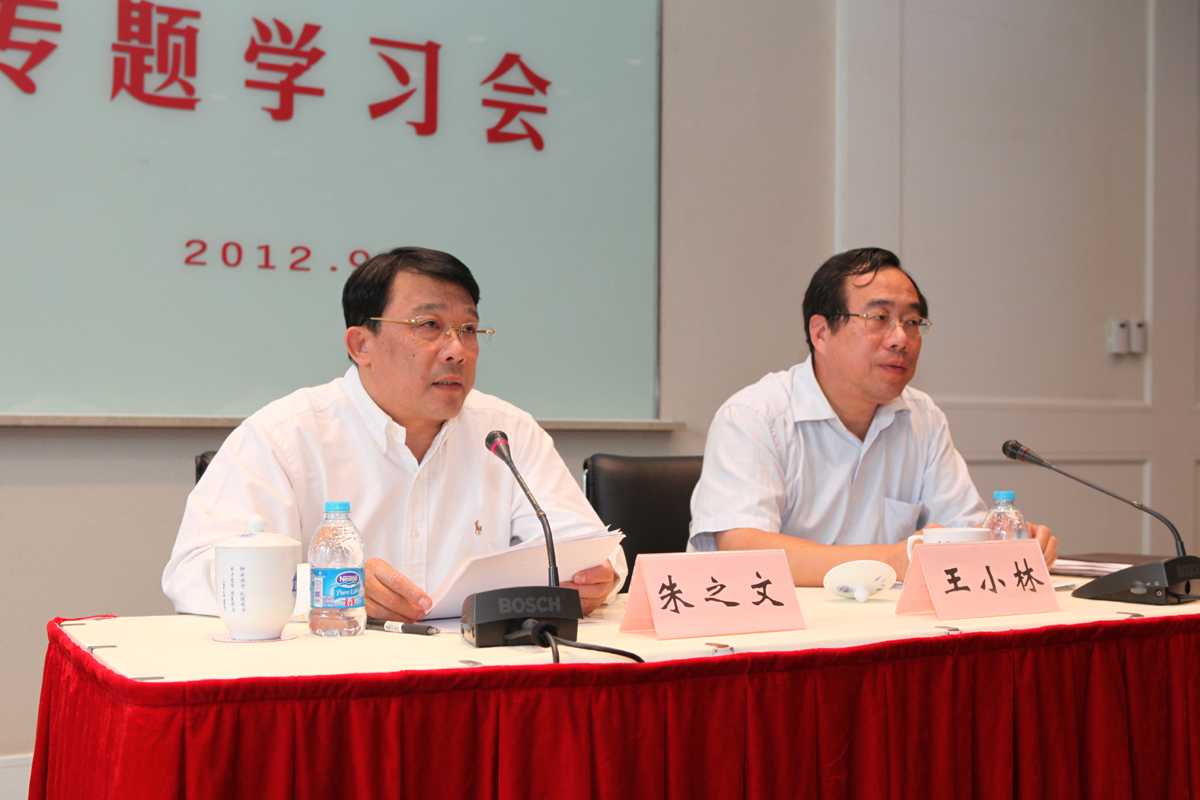 9月26日,我校举行了贯彻落实中央《关于加强新形势下党外代表人士队伍建设的意见》精神专题学习会。校党委副书记王小林主持会议,并传达了文件的主要精神。校党委书记朱之文在会上发表了讲话。
