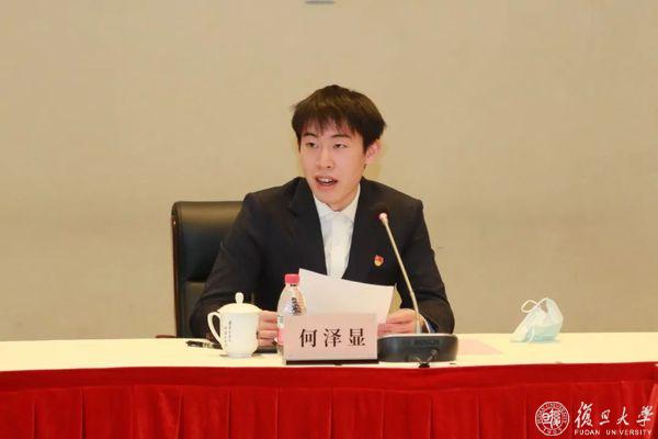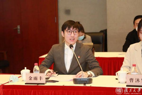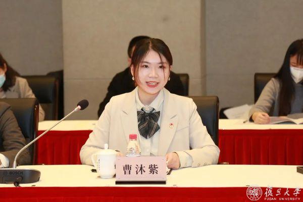 校学生会主席团成员、学生会枫林校区办公室主任、附属华东医院2019级本科生曹沐紫结合医学学生工作的经验,汇报了自己的思考:做上医精神的传承者,也要做枫林文化的建设者,更要做同学权益的守护者,引领医学生的方向,拓宽医学生的视野,守护医学生的权益,传递医学生的声音。