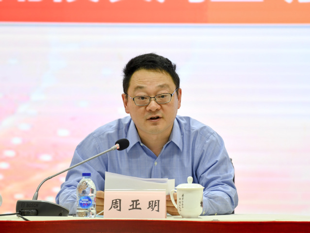 周亚明代表中共复旦大学委员会向大会的胜利召开表示热烈祝贺,向一直以来支持和关心学校各项工作的九三学社上海市委表示感谢。他充分肯定了九三学社复旦大学第七届委员会五年来为学校事业发展作出的贡献,并对新一届委员会提出了四点要求:一是夯实多党合作政治基础,把文化传承好;二是不断推进自身能力建设,把梯队建设好;三是提升参政议政综合能力,把品牌建设好;四是服务学校学科建设发展工作,把任务承担好。
