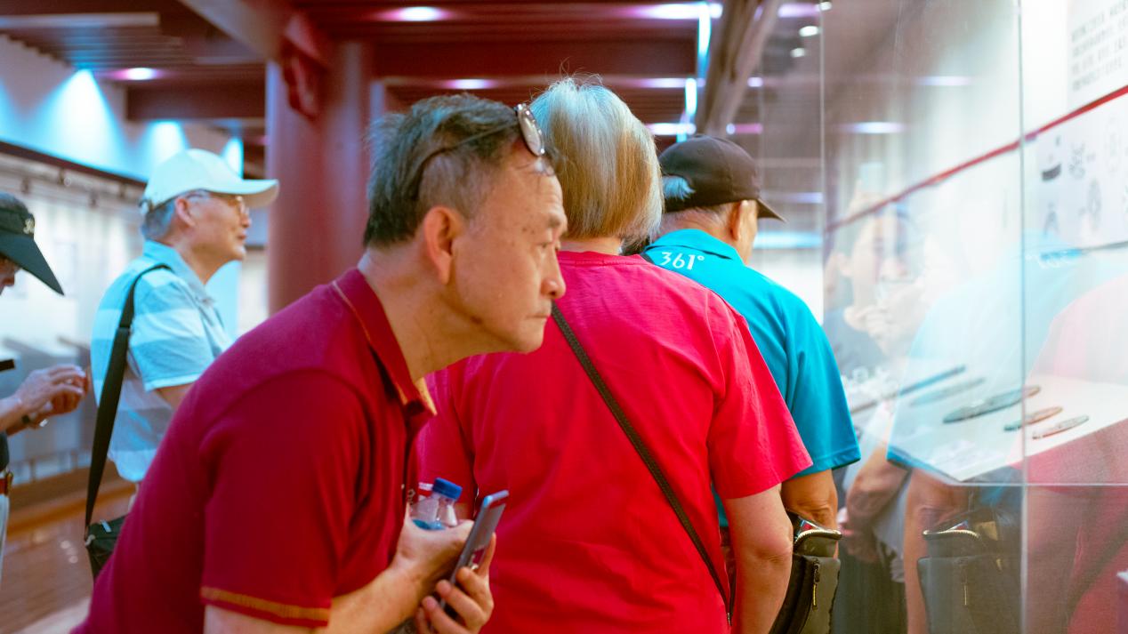 在麻老师的带领下,退休盟员们仔细端详一面面饱经风霜的铜镜,俯身细察铜镜背后造型各异、精美古朴的花纹和铭文,感受其中蕴含的传统文化和人民的美好祝愿。盟员们感叹中国古代的审美水平和制造技艺所达到的高度,更加体会到中华文化的博大精深,增强了文化自信与文化自觉。