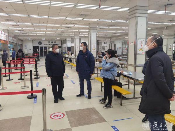 中午,金力前往旦苑食堂,听取总务处对食堂近期餐饮供应、员工健康等情况的介绍,慰问坚守一线的食堂员工,感谢他们的辛勤劳动和暖心服务。