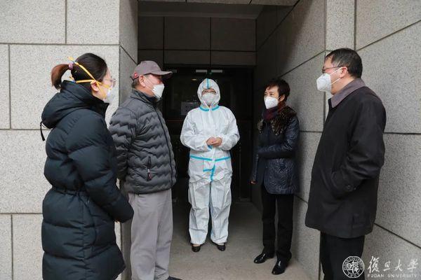 随后,焦扬前往复宣酒店、燕园宾馆健康驿站走访调研。“里面住了多少学生?同学现在状况怎么样?”焦扬详细了解驿站中安置新冠感染学生的保障情况,得知目前驿站运转有序、同学们健康状态平稳、生活学习有保障后表示,“父母把同学托付给学校,我们一定要守护保障好”,要求大家更好服务、保护好同学的健康安全。“请焦书记放心!我们是复旦的一员,我们会尽最大力量守好这道防线、保护复旦师生健康。”健康驿站负责人、驻点医生纷纷表示。