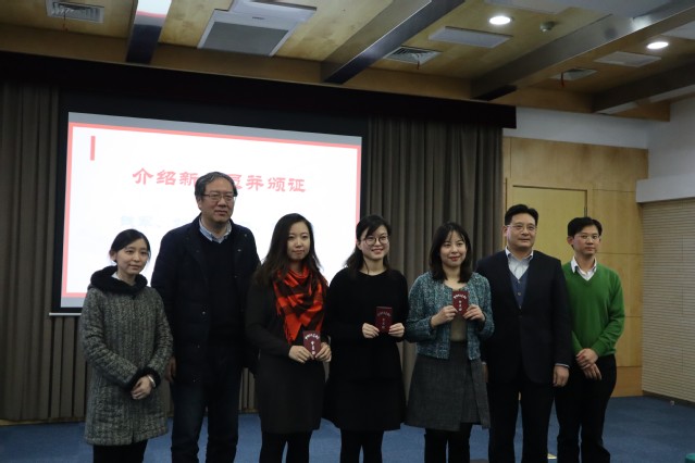 随后,陈引驰传达了中国民主建国会十一届三中全会、上海市民建市委2020务虚工作会议的精神,并简要通报了民建复旦大学委员会2019年各项工作及2020年工作打算。新入会的会员作了自我介绍,并举行了颁证仪式。