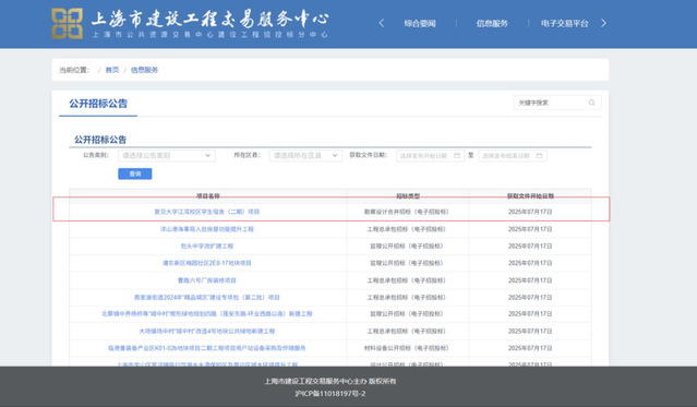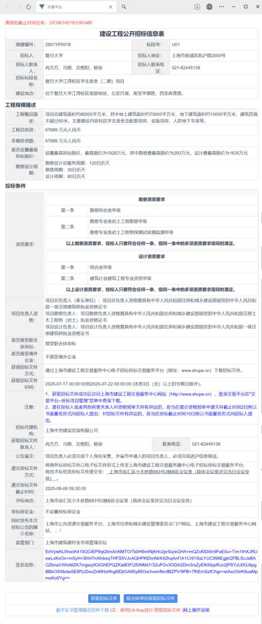 复旦大学江湾校区学生宿舍(二期)项目勘察设计合并招标公告(转发)