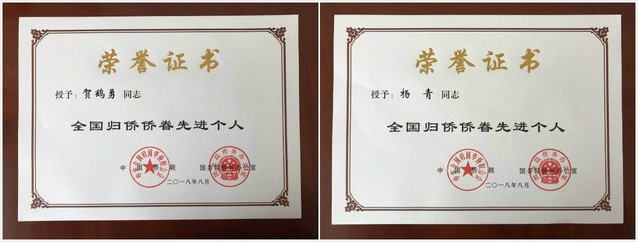 | 我校贺鹤勇、杨青教授荣获全国归侨侨眷先进个人称号 |