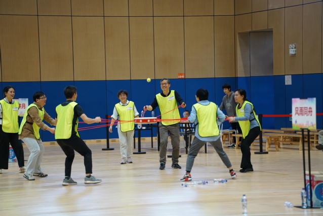 运动会集团体竞技、趣味性、娱乐性于一体,共设有携手奋进、大珠小珠落玉盘、袋鼠蹦蹦跳、同舟共济、众星拱月、风雨同舟等六项团体赛项目,及投壶、同心圆(套圈)、踩气球与统战知识问答等趣味活动。同时还设有团扇临摹、蜡拓、线装书装订等非遗项目体验。