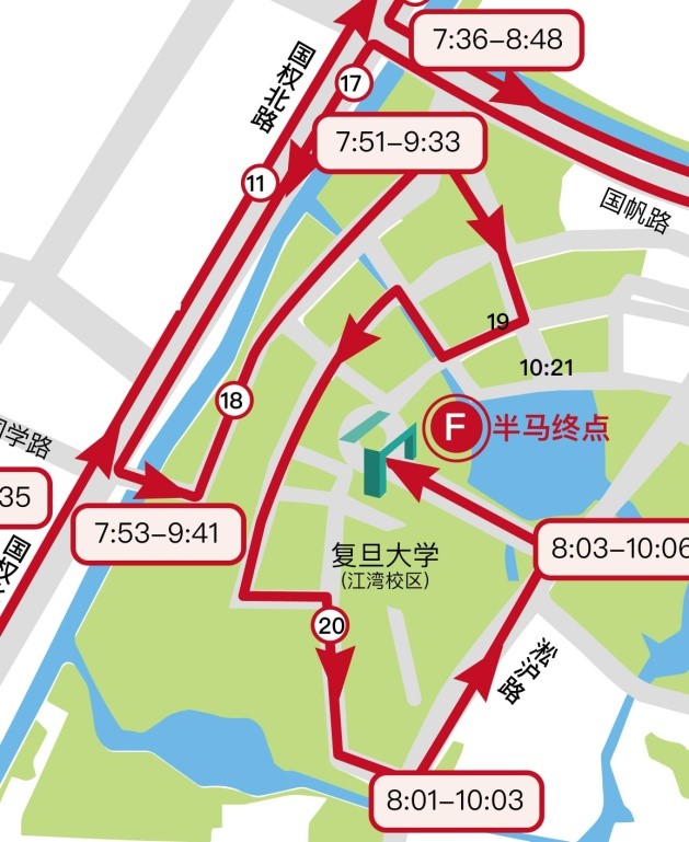 附图二:江湾校区“2018杨浦新江湾城国际半程马拉松”比赛赛道图