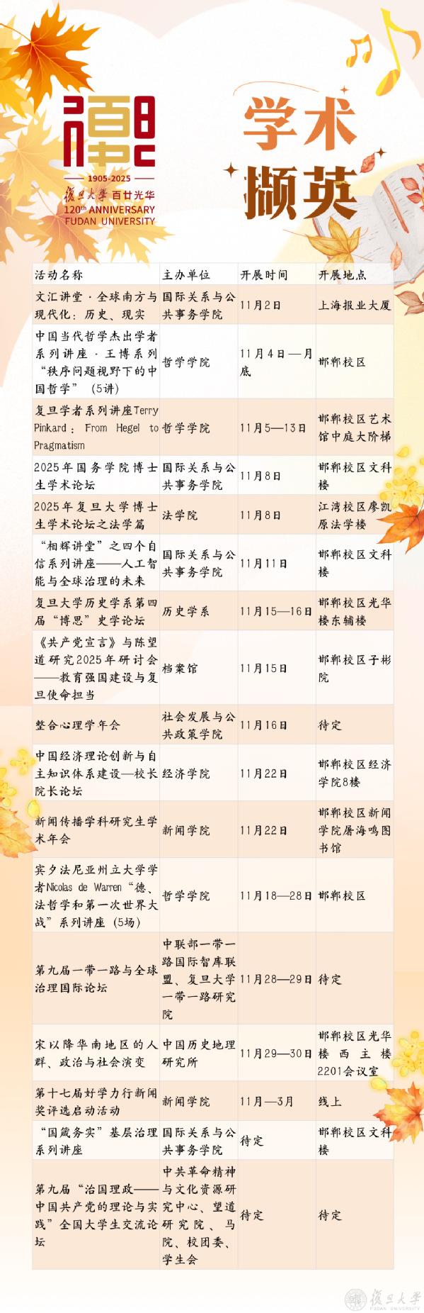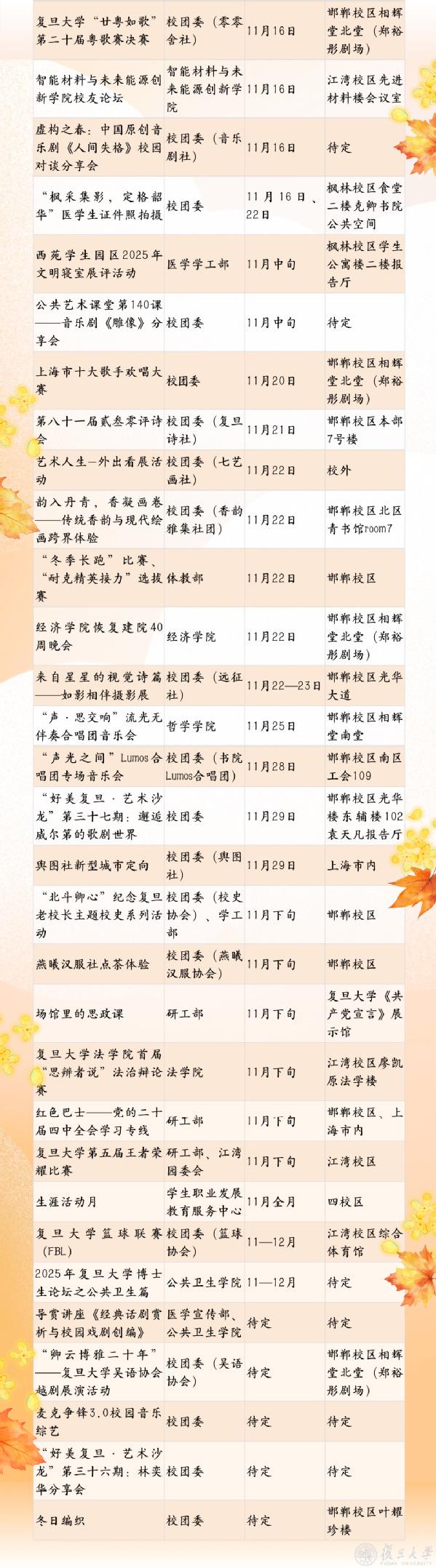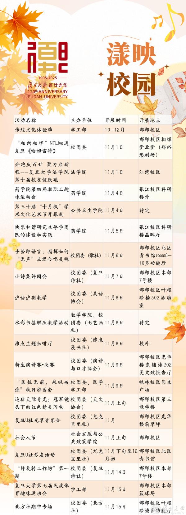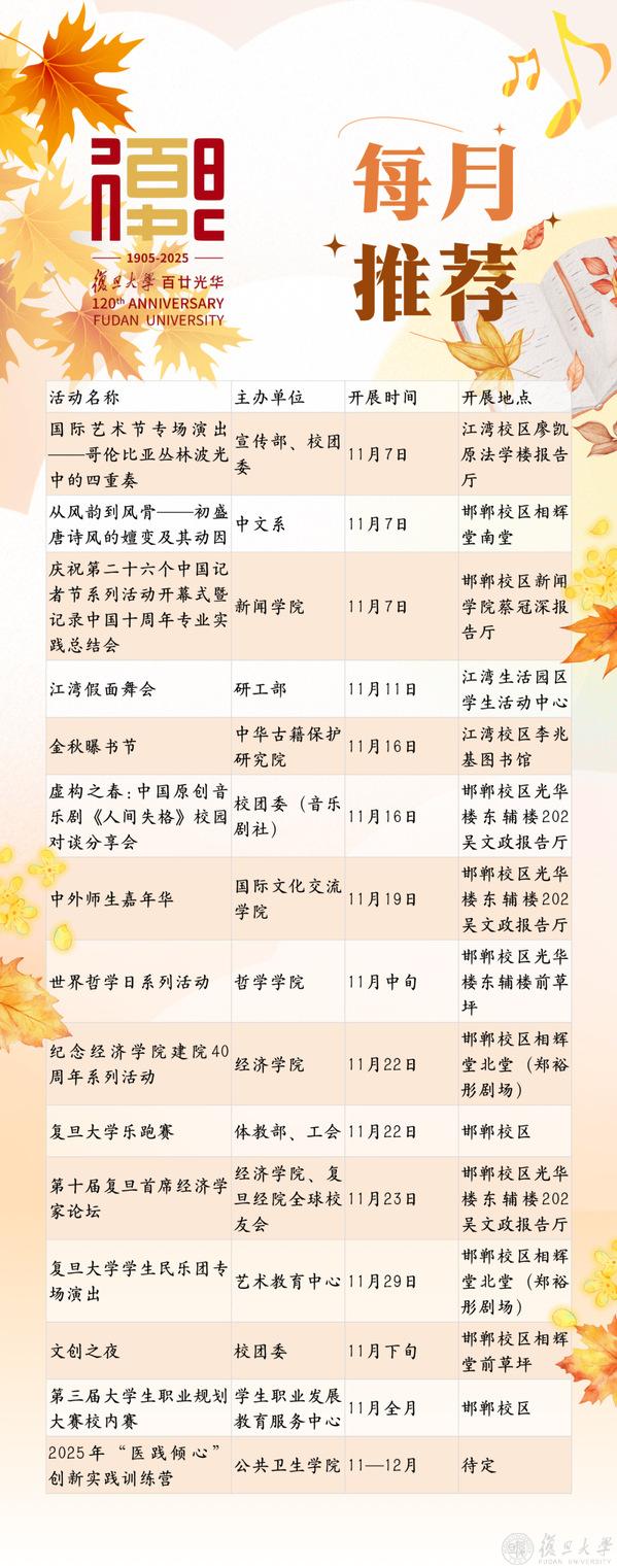【文化校历】11月复旦文化之旅邀您共赏