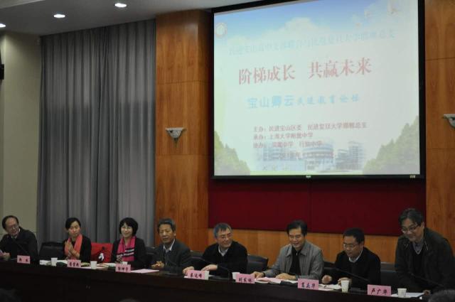 论坛由民进上海大学附属中学支部主任胡金河主持。宝山区统战部常务副部长刘发林、民进宝山区委主委、宝山区人大副主任、体育局局长蒋碧艳,上海大学附属中学校长卢广华等出席并致辞。复旦大学党委统战部副部长葛庆华、民进复旦大学委员会副主委郭坤宇、邯郸总支副主委苏仰锋、民进市委委员董文博,民进宝山区实验性示范性高中支部联合的会员代表和上大附中部分学生代表等参加了论坛活动。