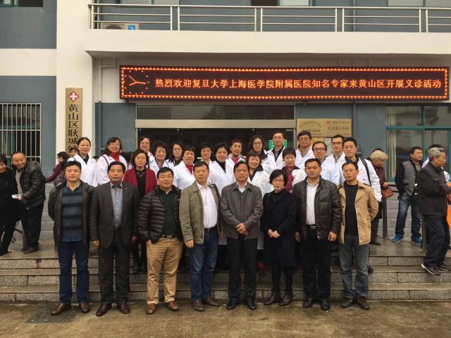 应黄山区委统战部、区卫生局、耿城镇党委政府邀请,在九三学社复旦大学枫林分委会主委周国民的带领下,枫林分委会20多名医疗专家于2015年11月20日下午启程,赴黄山市耿城镇开展义诊服务。校党委统战部相关负责同志参加了此次活动。