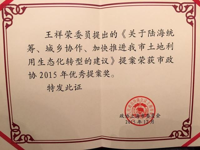 市政协十二届四次会议对2015年优秀提案进行了表彰,王祥荣委员提出的《关于陆海统筹、城乡协作、加快推进我市土地利用生态化转型的建议》,干杏娣、左伋委员参与的《关于以迪斯尼为契机,带动临港旅游产业发展的建议》,均荣获市政协2015年优秀提案奖。