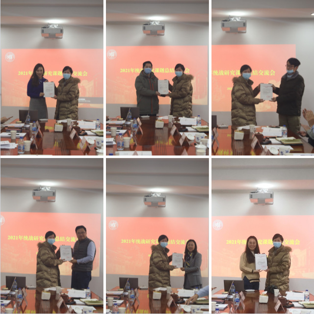 医学统战部副部长曹育玲向与会课题负责人颁发了结项证书,希望各位老师在新的一年里继续积极报送课题,助力统战工作开创新局面。
