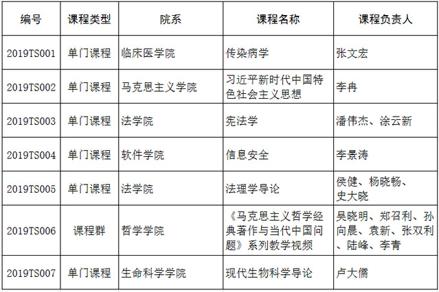 根据《复旦大学学科特色在线课程建设项目试点启动通知》(复旦学院通字〔2018〕25号),于2019年1月确定复旦大学2019年度第一批学科特色在线课程规划项目。2019年3月27日,校内外专家对各规划项目的建设基础进行了评议,最终确定首批立项名单,共7门课程(包括一个课程群),现予以公布。其余课程或进一步修改完善,或作为校内混合式教学改革项目给予支持。