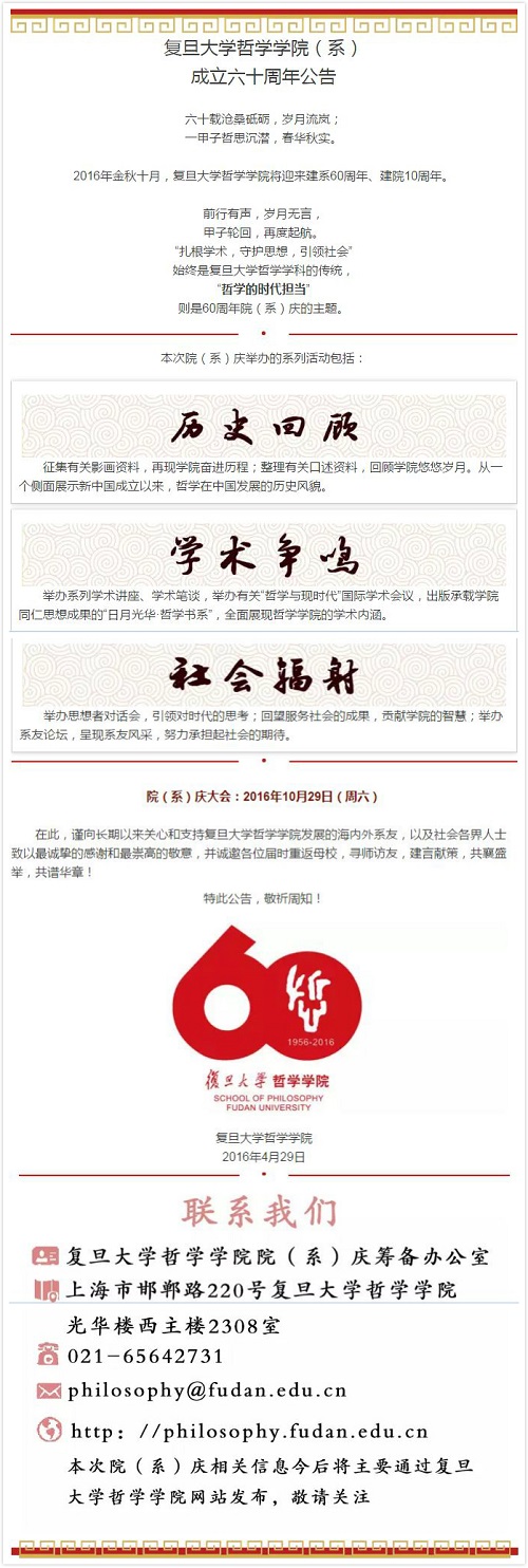 复旦大学哲学学院(系)成立六十周年公告