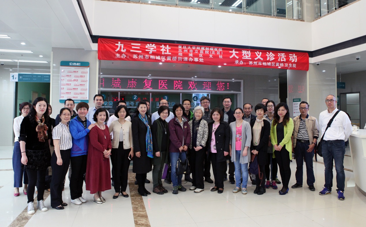 日前,我院九三社员一行十余人在支社领导曹军宁支委,张文明、王佳蕾副主委的带领下,来到苏州相城区黄桥街道,在黄桥医院新址,携手苏州市立医院九三社员,共同为当地百姓义诊,受到大家一致好评。