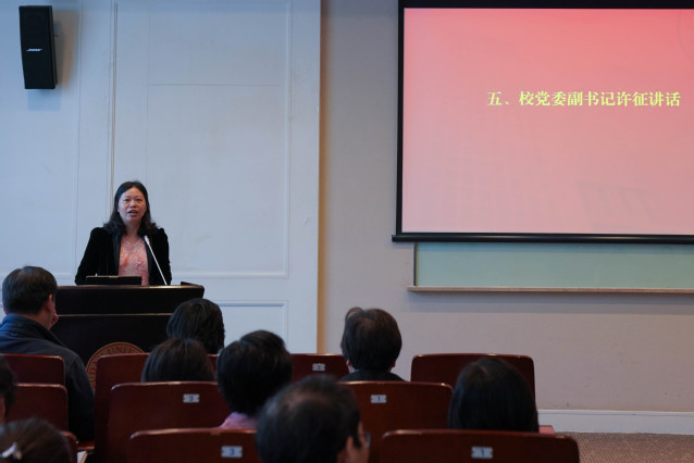 许征在讲话中指出,做好全年统战工作,要提高政治站位,深入学习贯彻习近平总书记关于加强和改进统一战线工作的重要思想;要聚焦政治任务,推进全校统战领域重点工作;要夯实基础管理,完善工作机制压实基层党委对统战工作的主体责任。要坚持“谋字在先,干字当头,实字落地,稳字守底”,把抓落实摆在重要位置,团结凝聚统一战线成员,画出学校统战工作的最大同心圆,努力开创全校统一战线工作新局面。