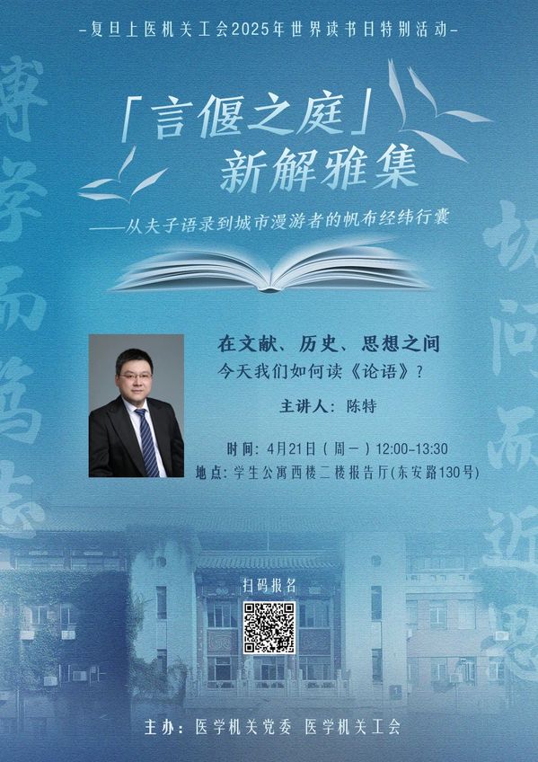 春风翻动书页的沙沙声,是这个四月最动人的白噪音,4月23日,世界读书日如约而至。复旦大学上海医学院将举办一系列世界读书日主题活动,为你开启一段深刻的精神漫游,让阅读成为春日里最惬意的时光。