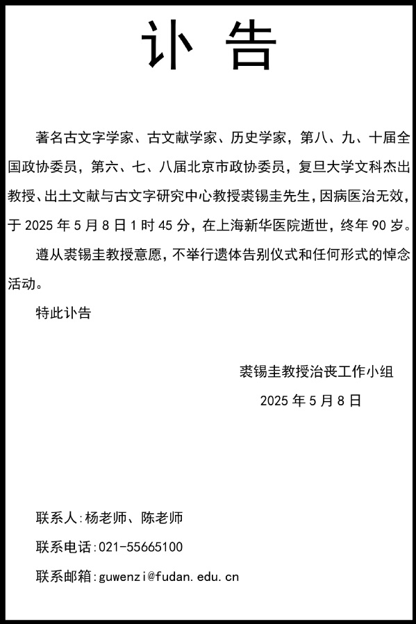 讣告 | 沉痛悼念裘锡圭教授