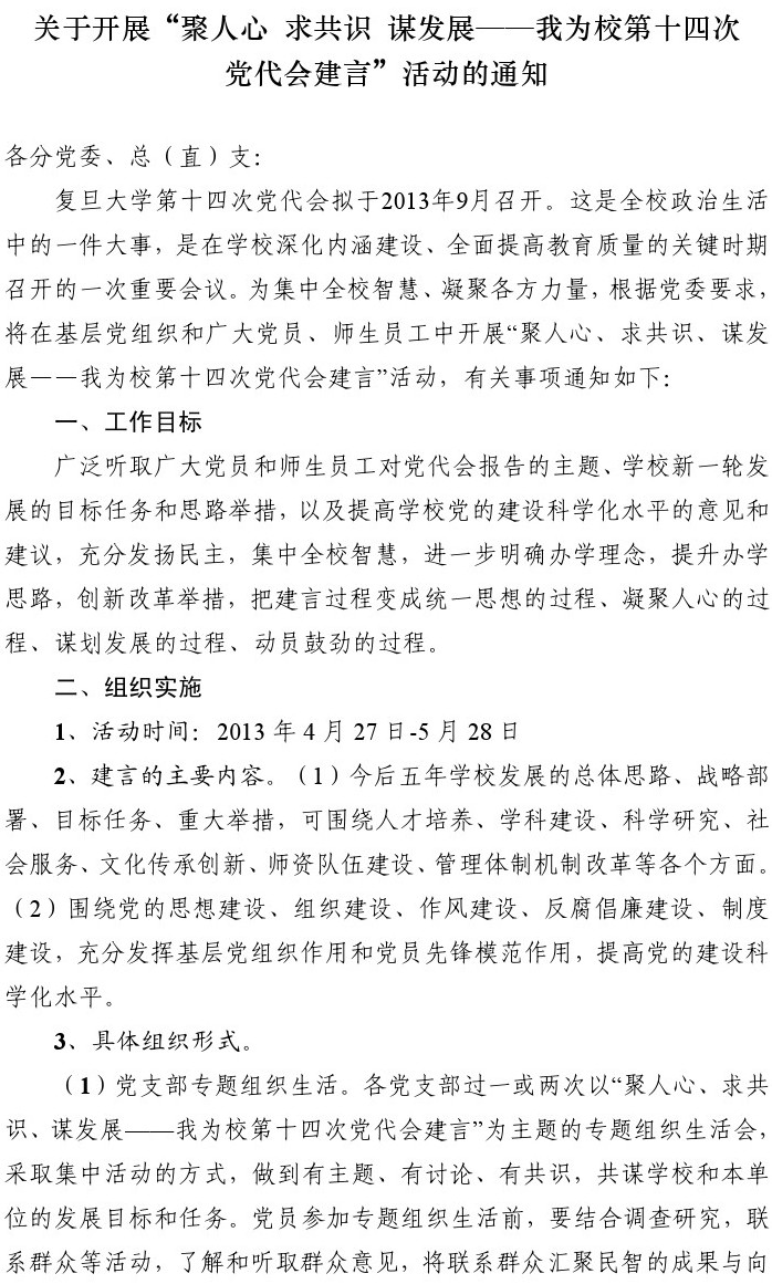 关于开展“聚人心 求共识 谋发展——我为校第十四次党代会建言”活动的通知
