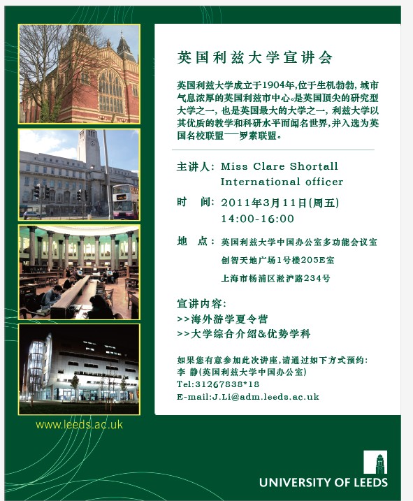 | 3月11日英国利兹大学暑期班宣讲会(欲参加者需回复确认) |