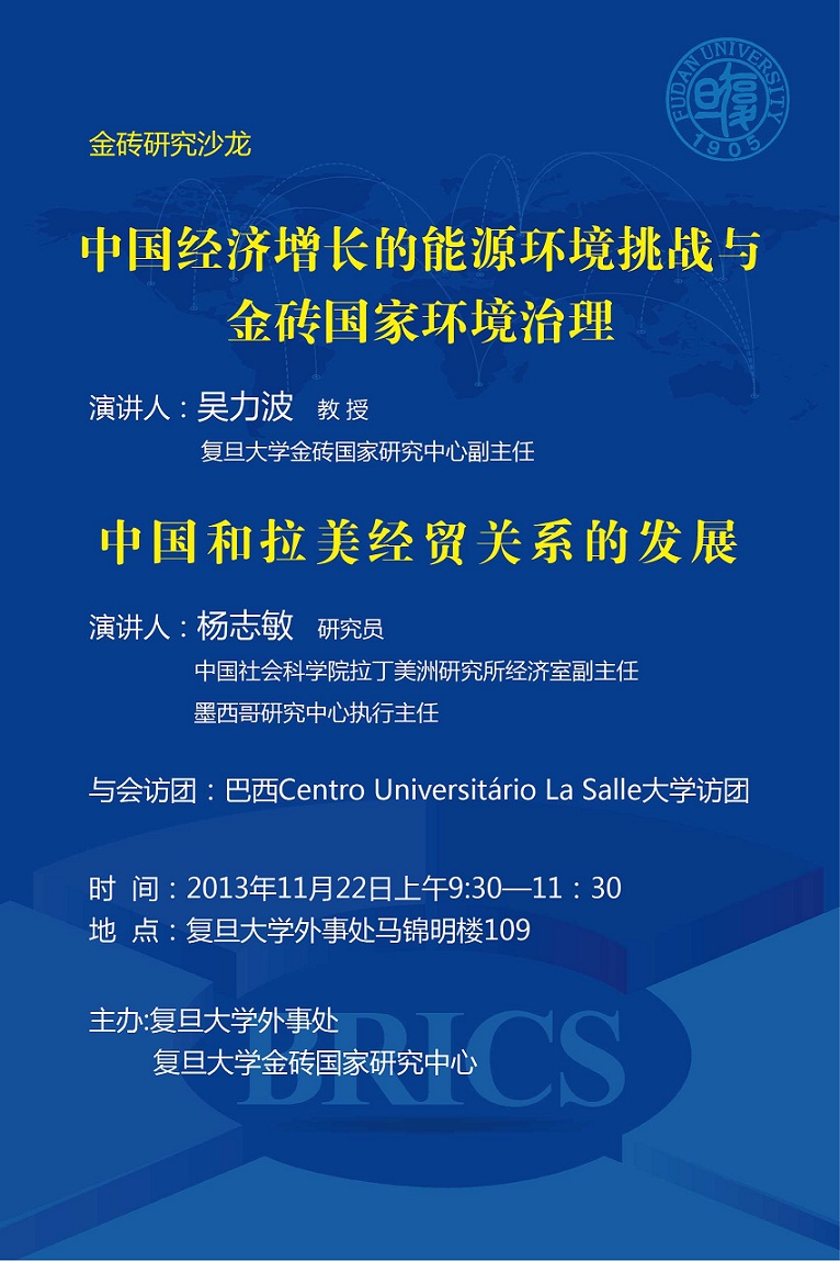 金砖中心讲座――中国经济增长的能源环境挑战与金砖国家环境治理
