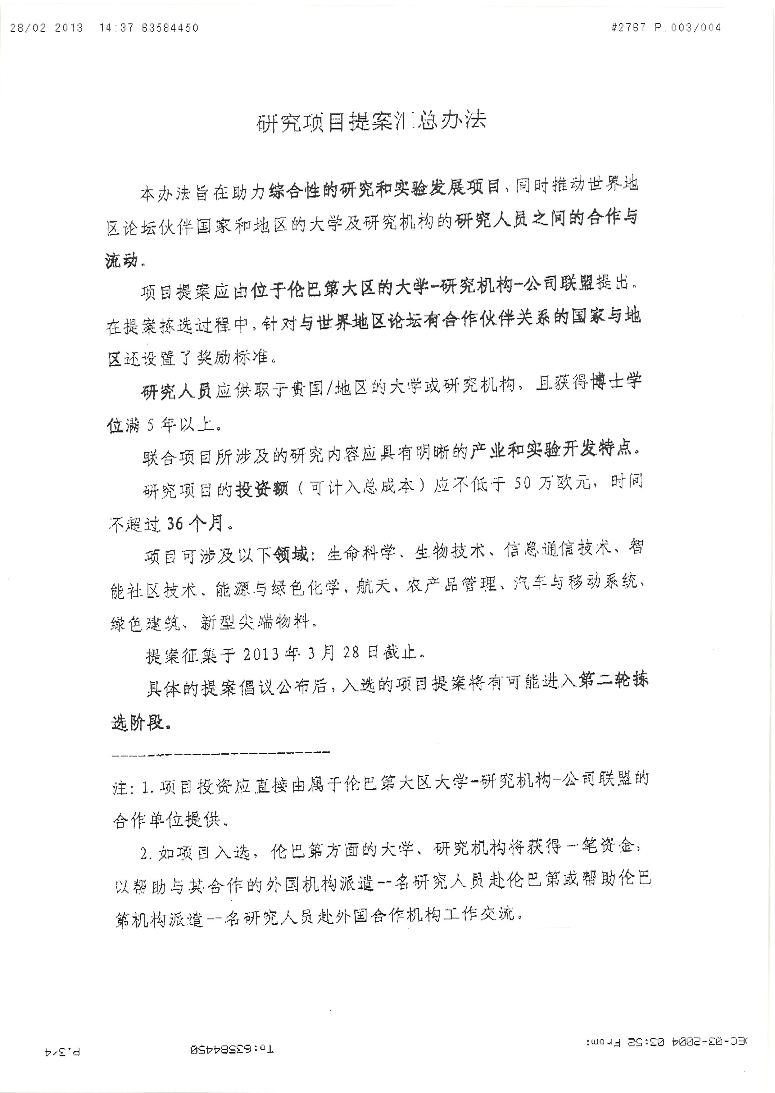 研究项目的投资额应不低于50万欧元,时间不超过36个月。