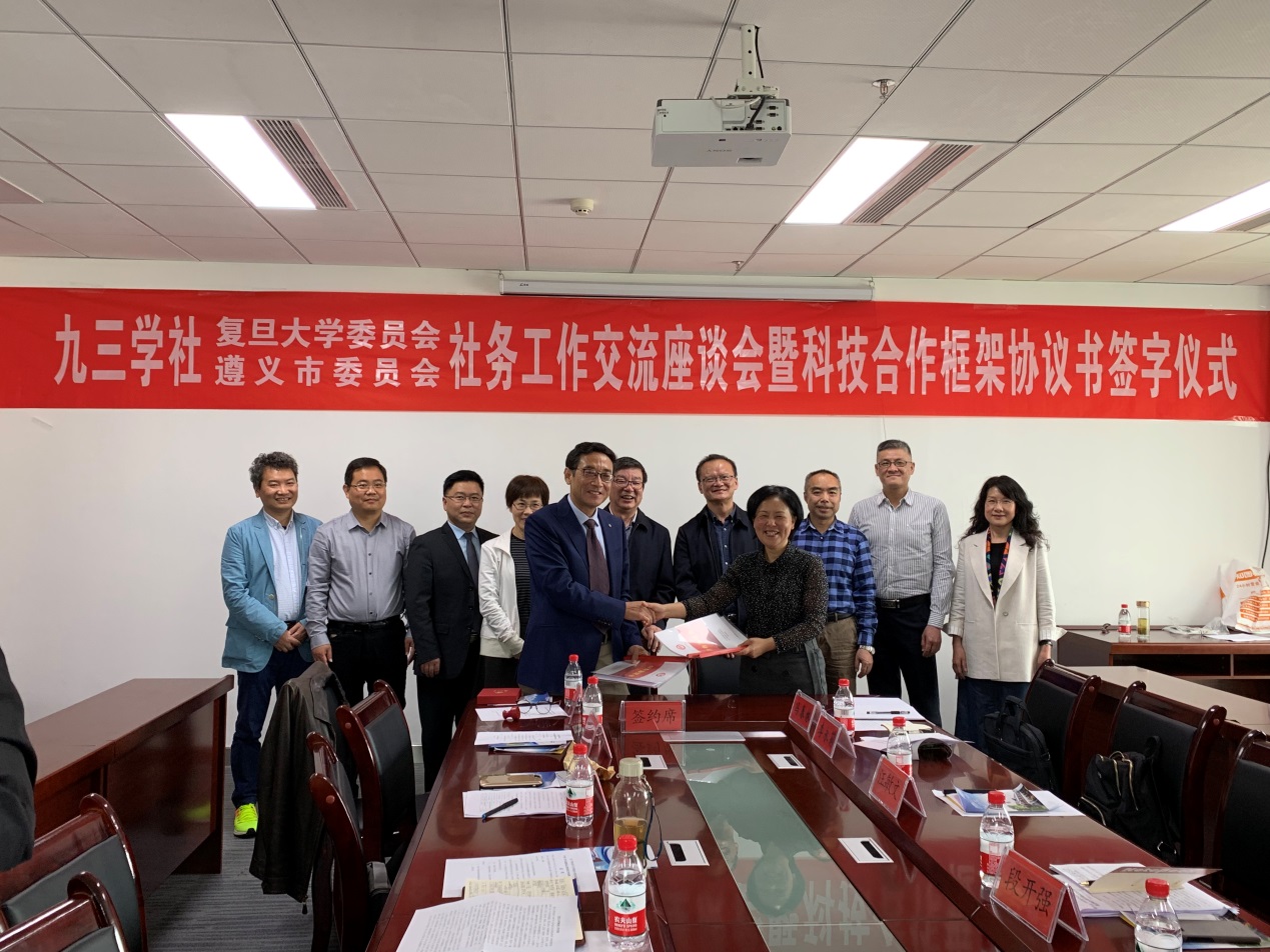 4月22日,九三学社复旦大学委员会、九三学社遵义市委员会在九三学社遵义市委召开了九三学社基层组织工作交流座谈会。九三学社复旦大学委员会常务副主委左伋和九三学社贵州省委副主委、遵义市委副主委葛正龙分别代表两地九三学社基层组织做了情况介绍和工作交流,中国科学院院士、复旦大学党委常委、统战部部长赵东元和遵义市委统战部常务副部长段开强分别代表复旦大学党委统战部和遵义市委统战部讲话。会上,两地九三学社基层组织还签订了科技合作框架协议书。