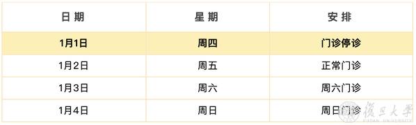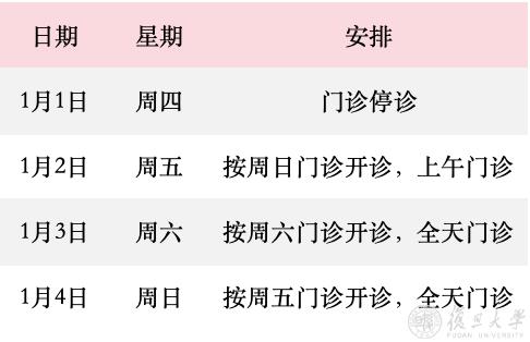 元旦假期将至,为方便就医,小编整合了复旦各附属医院门诊安排,愿大家度过一个健康快乐的假期!