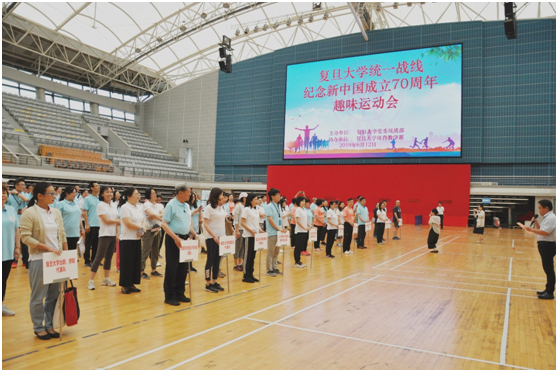 为隆重庆祝新中国成立70周年、中国共产党领导的多党合作和政治协商制度确立70周年,在校党委的领导下,统战部制定了《复旦大学统一战线庆祝新中国成立70周年活动方案》,将在统一战线开展运动会、座谈会、文艺汇演、同心大讲堂等丰富多彩的庆祝活动。趣味运动会是系列庆祝活动的重要一环,来自各民主党派、统战团体的12支代表队,共120名队员参加了比赛。