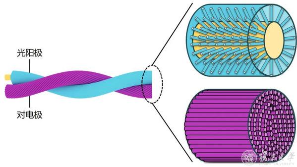 项目建立了新型纤维太阳能电池模型,在高曲率光阳极表面设计径向取向的金属氧化物纳米管阵列,揭示了径向取向纳米结构促进光生载流子高效收集的机制;将一维和二维导电纳米材料取向共组装创制出复合纤维对电极,发现了轴向取向纳米结构促进电荷快速传输的规律;通过螺旋加捻和同轴缠绕等方法创建稳定电极界面,构建出纤维染料敏化、聚合物、钙钛矿太阳能电池,实现了较高的光电转换效率,在反复弯折、扭曲、打结等复杂形变下保持稳定。通过材料模块化设计,实现了纤维太阳能电池与其他纤维器件的高效集成。研究成果有助于推动柔性太阳能电池的发展。