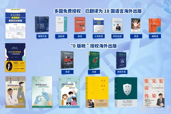 2019年以来,团队出版新冠及传染病科普图书,以公益和销售相结合的方式累计发行量逾140万册。其中《张文宏教授支招防控新型冠状病毒》被翻译为18个语种出版,图书衍生的漫画、动画、音频等多媒体辐射广泛,被人民日报、央视新闻、学习强国等平台转发,传播效应指数级放大。
