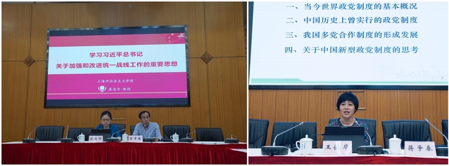 开班仪式后,上海市社会主义学院蒋连华教授和王俊华副教授分别为学员作“学习习近平总书记关于加强和改进统一战线工作的重要论述”和“中国政党制度”专题报告。蒋连华从统一战线和统战工作所处的历史方位、所肩负的使命任务等角度,深入解读了习近平总书记关于统战工作的新理念、统一战线地位作用的新阐述,以及促进五大关系和谐的重要论述。王俊华从当今世界政党制度的基本概况入手,介绍了中国历史上曾实行的政党制度,回顾了我国多党合作制度的形成发展历程,提出了对于中国新型政党制度的思考。