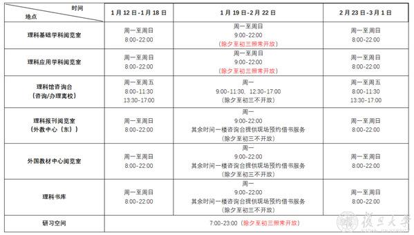 ★备注:1、联系电话021-31242047、31242041或Email:libjw@fudan.edu.cn2、1月19日-2月22日,如需三楼理科借阅区图书请至一楼读者服务中心或物业办公室(A102)联系工作人员取书。
