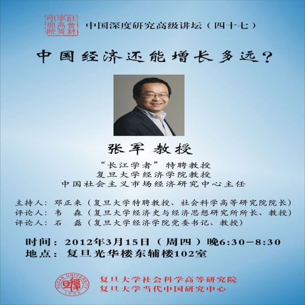 “中国深度研究高级讲坛:中国经济还能增长多远?”于3月15日(周四)18:30在光华楼东辅楼102报告厅举行。届时,活动将进行网络直播。