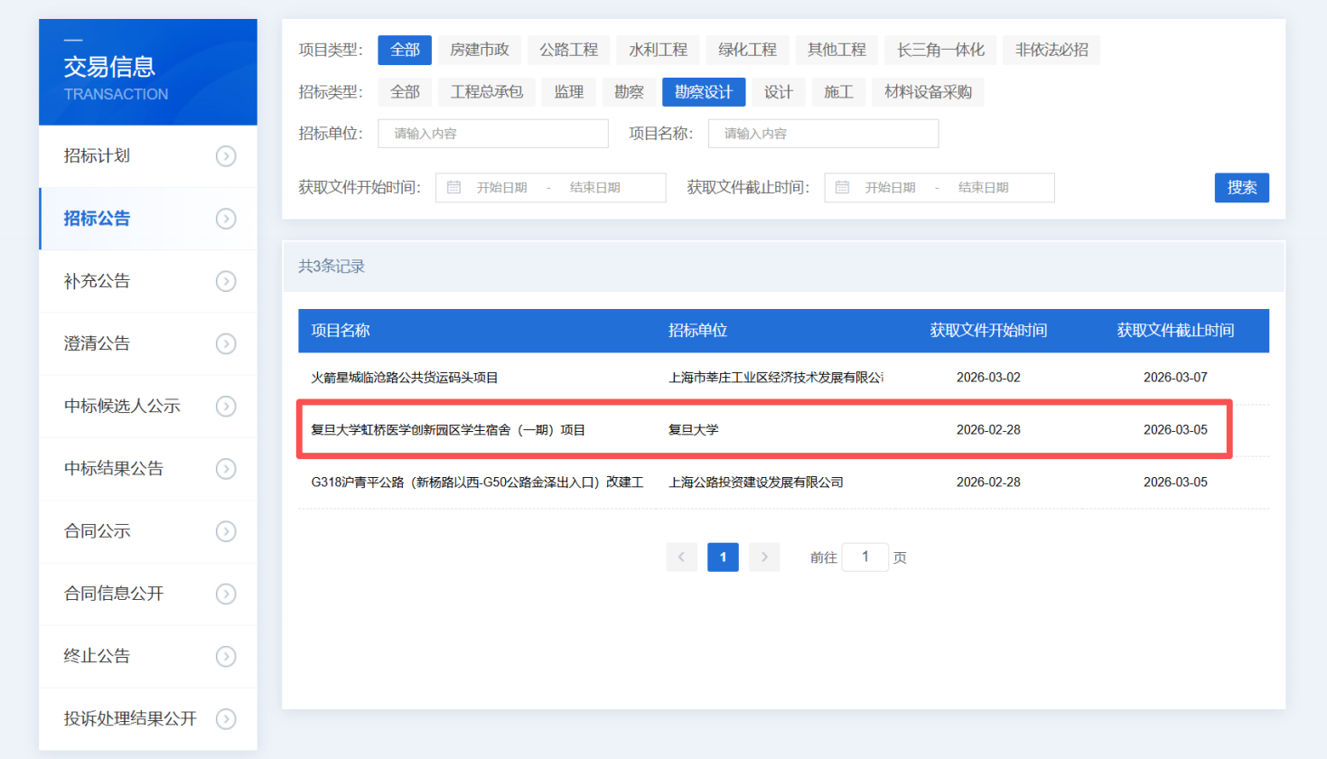 复旦大学虹桥医学创新园区学生宿舍(一期)项目勘察设计合并招标公告(转发)