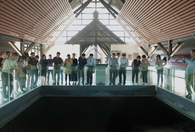 在中国吴文化博物馆•鸿山遗址博物馆,教师们在一块块展板和一件件出土陶器、玉器、石璧前驻足。鸿山遗址是长江下游地区春秋战国时期的墓葬类遗址,被列入第六批全国重点文物保护单位。馆内展出的三件凤形佩制作精美,用放大镜可见精细纹路。展出的陶瓷编钟,反映了吴越文化和中原文化的交流融合。