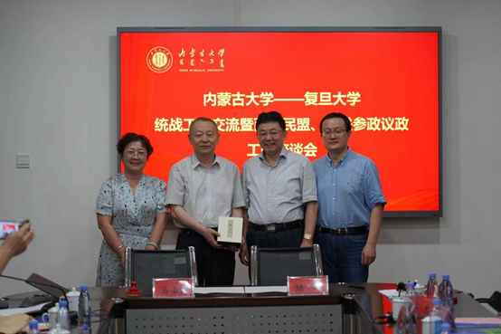 7月21日下午,内蒙古大学-复旦大学统战工作交流暨两校民盟、民进参政议政工作座谈会在内蒙古大学学术会议中心举行。全国政协常委、民盟中央常委、民盟内蒙古自治区区委主委赵吉,全国政协委员、民盟中央常委、民盟上海市委专职副主委丁光宏,中国科学院院士、复旦大学党委常委、统战部部长、内蒙古大学名誉校长赵东元,内蒙古自治区政协常委、民进内蒙古自治区区委副主委、内蒙古大学副校长杜凤莲等出席座谈会。复旦大学与内蒙古大学统战干部和两校民盟、民进骨干代表参加座谈会。内蒙古大学党委委员、统战部部长斯琴高娃主持会议。