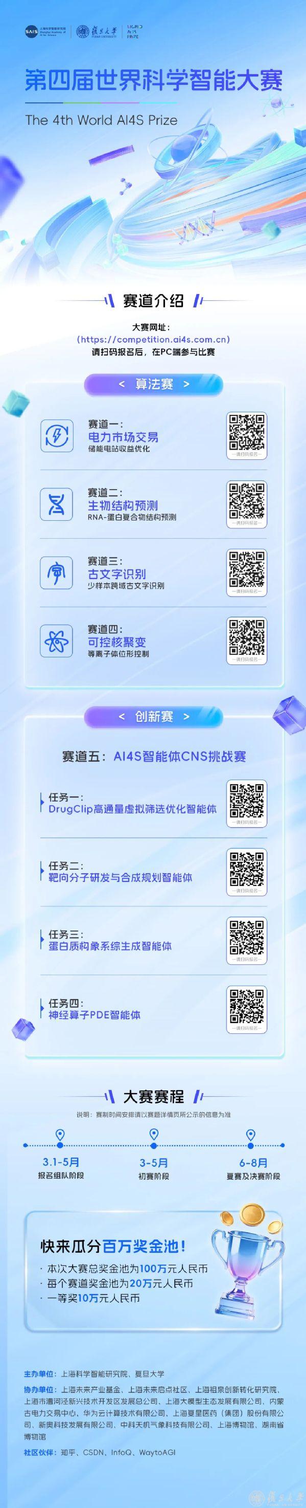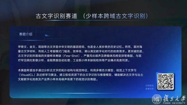 4月2日,大赛全赛道正式上线并启动报名。本次大赛由复旦大学和上海科学智能研究院(下称上智院)联合主办,共设置五大赛道,采用算法赛和创新赛两种模式,并首次设立人文科学赛道,推动前沿技术与中华文明研究的深度融合。