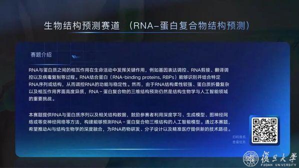 生物结构预测赛道聚焦 RNA–蛋白复合物三维结构预测这一关键前沿问题。针对RNA构象高度柔性、相互作用界面复杂且异质性强等核心挑战,鼓励选手发展融合深度学习、生成式建模与等变神经网络的统一建模框架,实现对分子序列、空间构型与相互作用关系的协同刻画。参赛者需完成从数据解析、模型设计到结构生成与精度优化的全流程科研闭环,探索AI与结构生物学在复杂生物体系中的深度融合路径。相关研究有望为RNA药物开发、抗病毒机制解析及精准医疗提供新的方法学基础与技术支撑。
