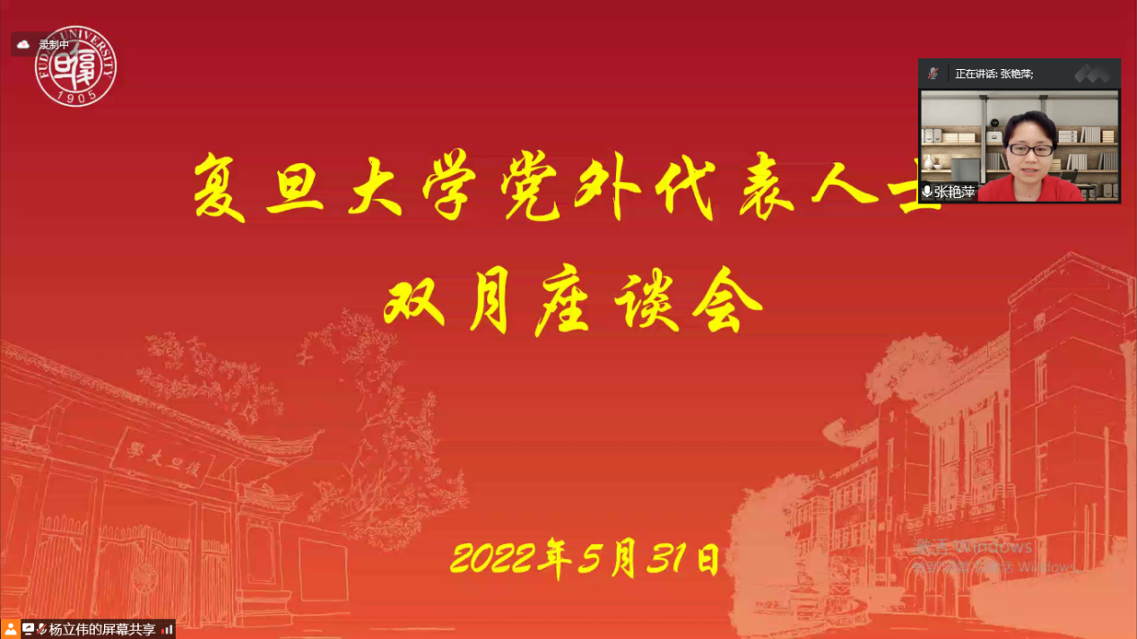 5月31日下午,复旦大学党外代表人士双月座谈会以线上方式召开,校党委常务副书记周亚明、上海医学院党委副书记张艳萍出席会议并讲话。学校各民主党派、统战团体负责人,无党派代表人士近40人参会。与会党外代表人士听取了关于统一战线近期参与抗击新冠疫情工作情况、以及2022年学校人才工作会议主要成果的报告,并围绕如何提升学校人才工作实效、更好统筹协调疫情防控与学校事业发展两个主题提出意见建议。会议由校党委常委、统战部部长赵东元主持。