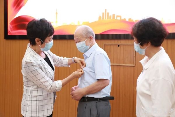 两年前,陈振新、朱良玉伉俪递交了入党申请书;一年前,党支部同意接收他们为中共预备党员;如今,经过一年的预备期考察,他们按期转正。座谈会上,焦扬为他们佩戴党员徽章。
